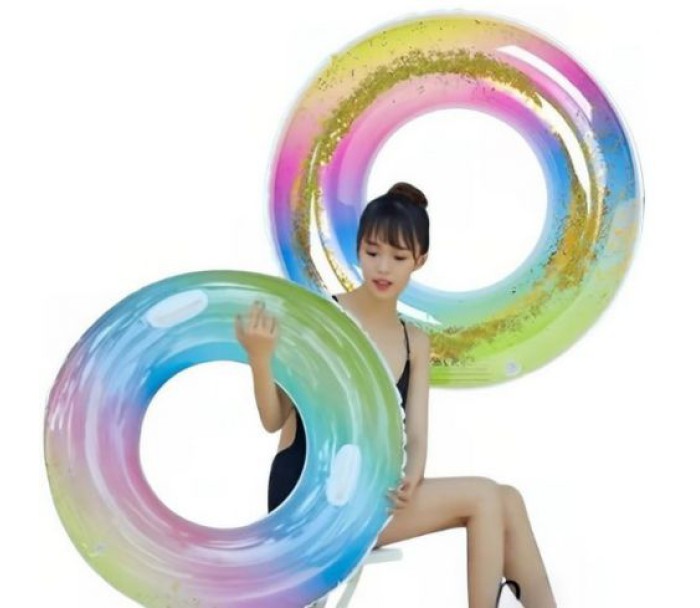 Надувне коло для плавання, ПВХ, з ручками, 100 см, з блискітками та райдужним принтом