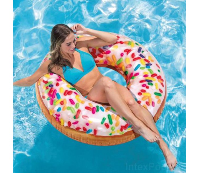 Круг надувний "Пончик з присипкою". Діаметр - 114 см. Виготовлений з високоякісного вінілу, товщиною 0,25 мм. Максимальне навантаження: 80 кг. Вік: від 9-ти років.