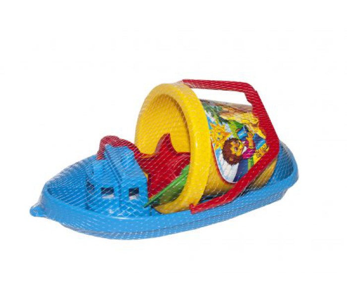 Комплектація: Кораблик, відро, лопатка, граблі, 2 пасочки