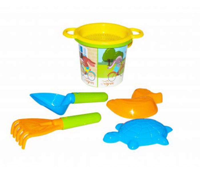 Комплектація: 6 ел .: ведро, лопатка, граблі, 2 пасочки, сито