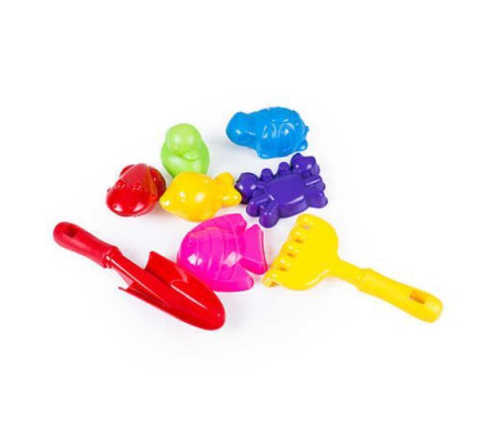 Набір для гри в пісочниці. У комплекті йде: лопатка, граблі, пасочки, іграшки.