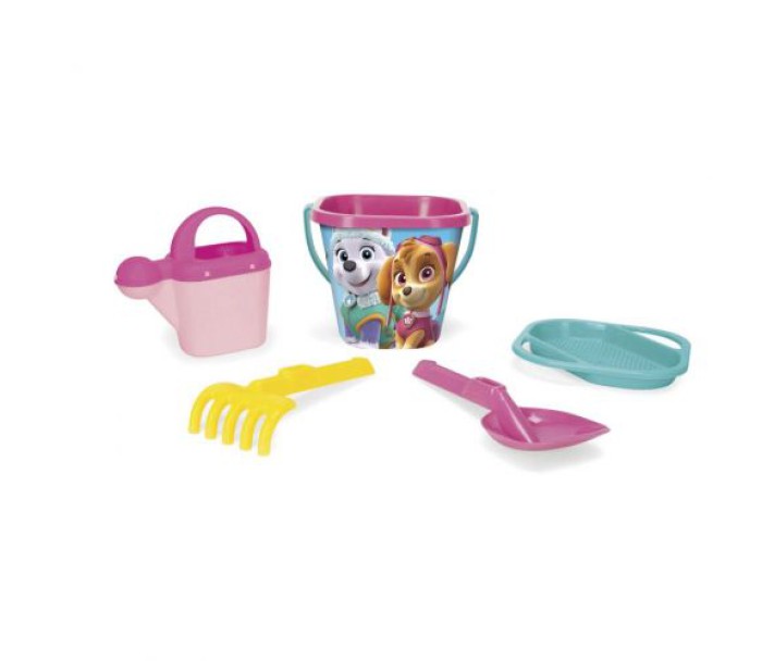Пісочний набір "Щенячий патруль". У набір входить: відро (16 х 16 х 15 см), лопатка та грабельки (18 см), сито та лійка. У ситі - 2 додаткові отвори для зручного носіння грабельок та лопатки