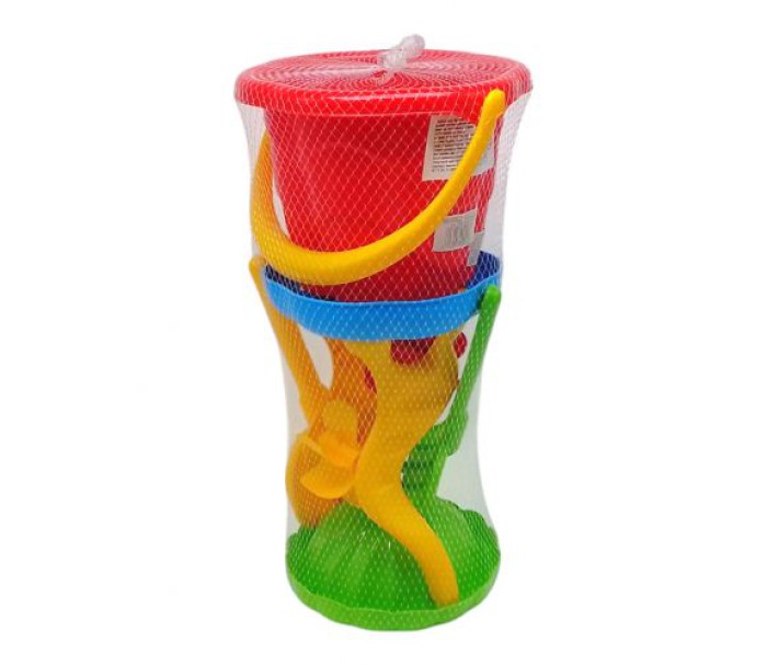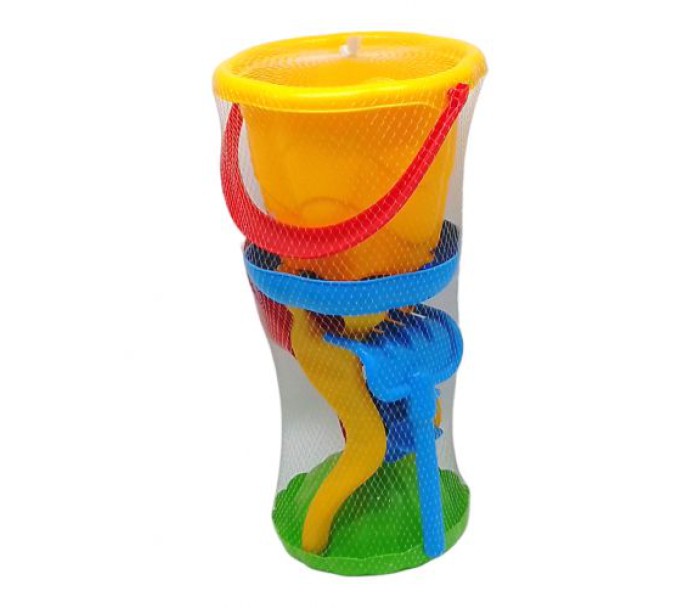 Пісочний набір до якого входять: відерце, лопатка, граблі та млин. Оригінальна іграшка для гри у пісочниці чи на пляжі. Два колеса під дією води або піску, які малюк наливає або насипає в зверху, рухаються в протилежні сторони. Розмір відерця 16х19х19 см. Різні кольори.