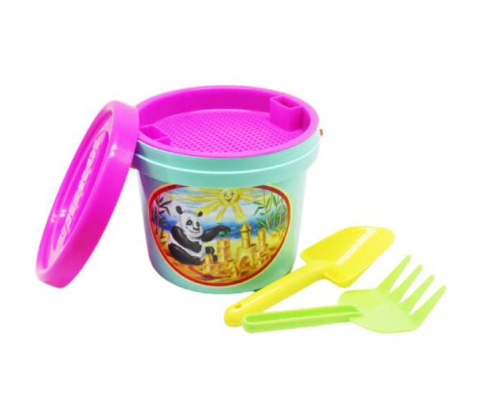 Комплектація: Відерце з кришечкою, ситечко, лопатка, грабельки