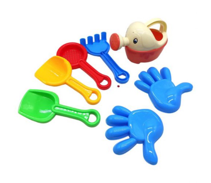 Пісочний набір буде чудовим подарунком дитині у теплу пору року. У комплект входить мила лійка у вигляді слоника, дві пасочки-долоньки, граблі, лопатка та лопатка-сито. Всі елементи набору виконані з якісного та міцного пластику. Прекрасно підійде для гри у пісочниці чи на пляжі.