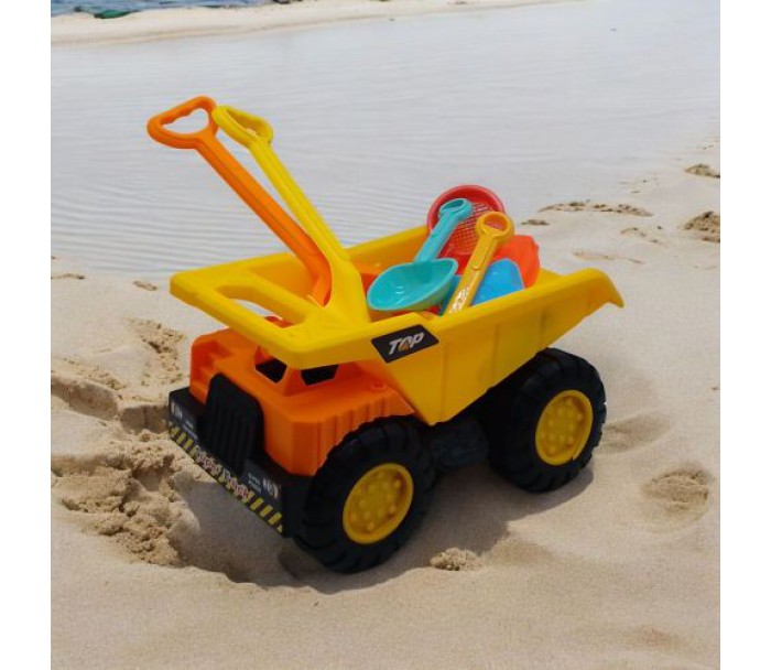 Пісочний набір "Машинка-самоскид" - чудовий вибір для захоплюючої гри на свіжому повітрі. У комплект входять: 2 великі лопатки по 34 см, одна лопатка 19 см, граблі 17 см, сито та 2 формочки. Яскрава машинка-самоскид довжиною 35 см оснащена відкидним кузовом, що робить гру ще цікавішою. Набір сприяє розвитку моторики, уяви та координації рухів.