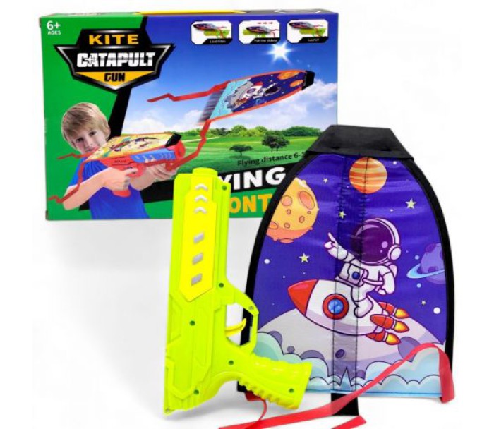 Цікава іграшка-запускалка обовʼязково порадує малюка. До комплекту входить пусковий механізм у вигляді пістолета. На пістолет встановлюється невеличкий тканинний літачок зі стрічками. Принцип роботи: літачок фіксується на пістолеті, відводиться до клацання, далі натискаєте курок - і ось ваш літак вже розсікає повітря. Розмір запускалки - 22х12,5х3,5 см; літачка - 25х20х0,2 см. Для дітей старше 6 років.