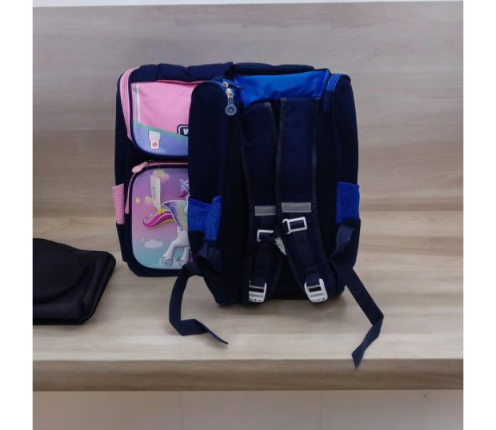 Цей рюкзак є чудовим варіантом для школи чи просто прогулянок. Його конструкцію укріплює пластикова вставка, завдяки якій він добре тримає форму, а регульовані лямки забезпечать комфорт дитині. Також його виконано з цупкої тканини, а яскравий дизайн з мультяшними персонажами сподобаються малюкові. Рюкзак має два відділення на змійках та відкриті бокові кишені. Розмір виробу: 26х16х40 см.