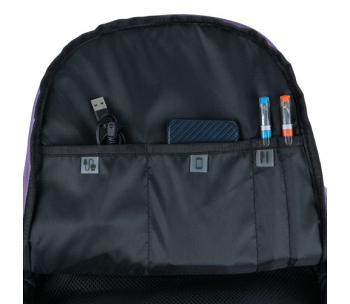 Рюкзак всередині: 1 внутрішня кишеня; відділення для ноутбука; органайзер; кишеня для телефону
