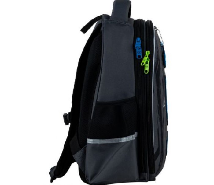 Рюкзак зовні: запатентована ортопедична спинка Ergo Kids; широкі S-подібні лямки; 2 відділення; 2 бічні кишені; світловідбивні елементи; мʼяка ущільнена ручка та текстильна петля; нагрудний ремінь; ущільнене дно з ніжками; зносостійкі блискавки, надійна фурнітура.