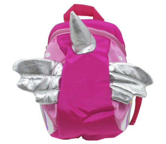 Чарівний дитячий рюкзачок невеликого розміру. Має лямки, довжина яких регулюється, та зручну петельку. Виріб з одним містким відділенням із роздільником посередині. Особливістю рюкзачка є декоративні елементи у вигляді мʼякого рогу та сріблястих крилець, як у чарівного єдинорога. Розмір: 22х28 см.