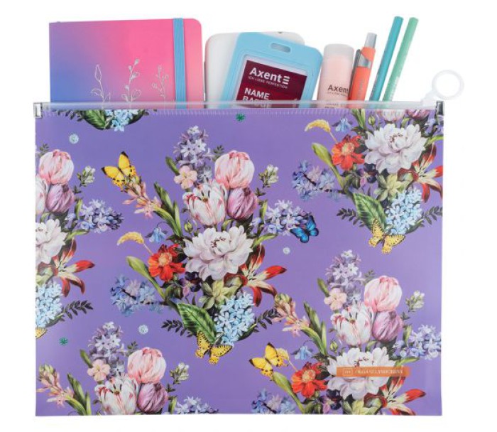 Папка на блискавці zip-lock, А4+, Olga Selyshcheva Secret — зручний і стильний аксесуар для зберігання і транспортування документів. Папка виконана з міцного пластику з сатиновим ефектом. Практична застібка zip-lock фіксує документи всередині папки, оберігаючи від мимовільного випадання. Завдяки високій щільності пластику (180 мкм), папери захищені від забруднень і вологи. Папка легка і зручна у використанні, з нею просто підтримувати акуратність і порядок. Оригінальний принт — стильна родзинка моделі: привертає увагу і делікатно демонструє вишуканий смак.