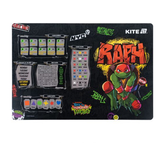Настільна пластикова підкладка Ninja Turtles використовується для творчості: малювання фарбами і олівцями, ліплення пластиліном, роботи з клеєм і папером. Також підкладку можна використовувати під столові прилади.