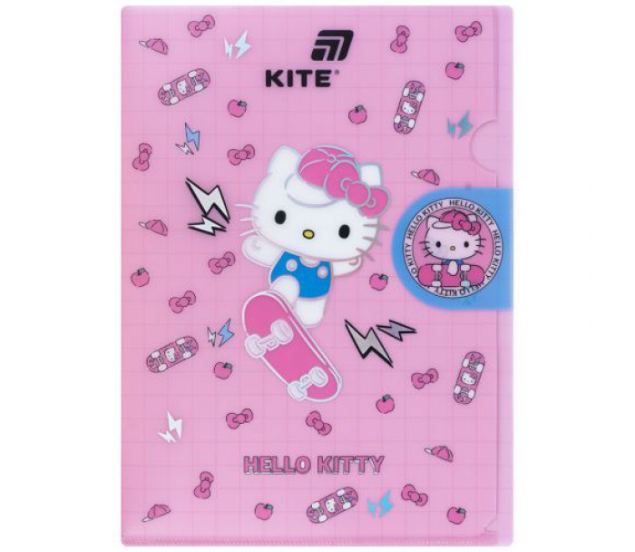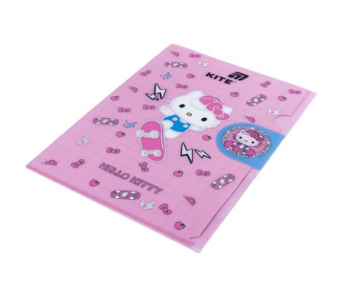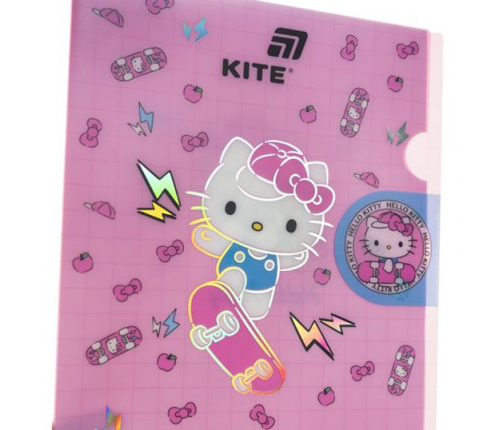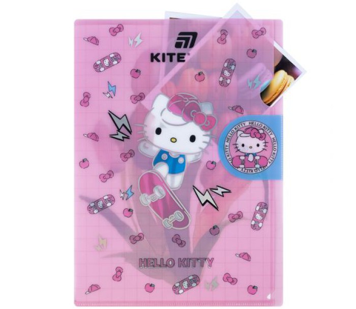 папка, куточок, клапаном, виконана, міцного, матового, пластику, оздоблена, фольгою, закривається, клапан, надійно, зберігає, документи, від, забруднень, заминань, щільність, 300, мкм, Kite, HK25-248-4