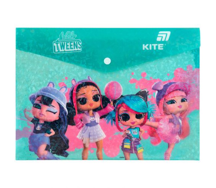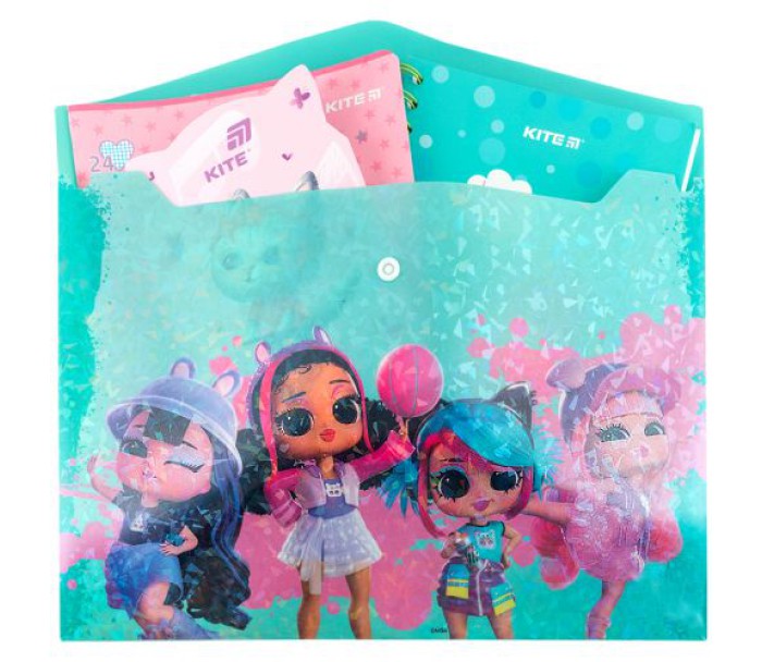 папка, кнопці, виконана, міцного, голографічного, пластику, закривається, кнопку, надійно, зберігає, документи, від, забруднень, заминань, щільність, 180, мкм, Kite, LO25-244-2