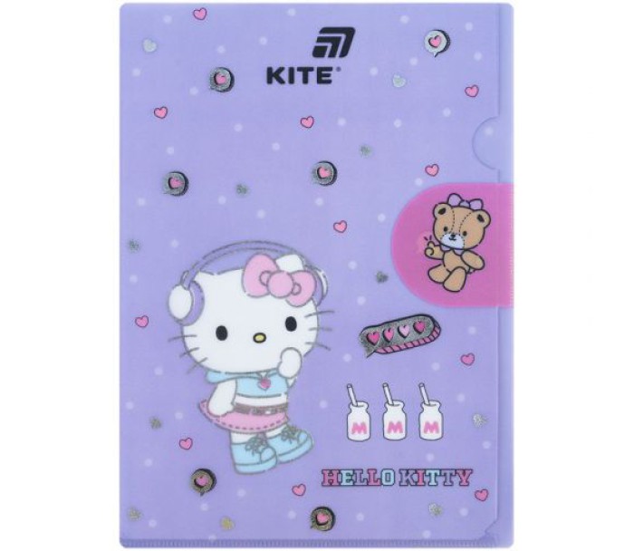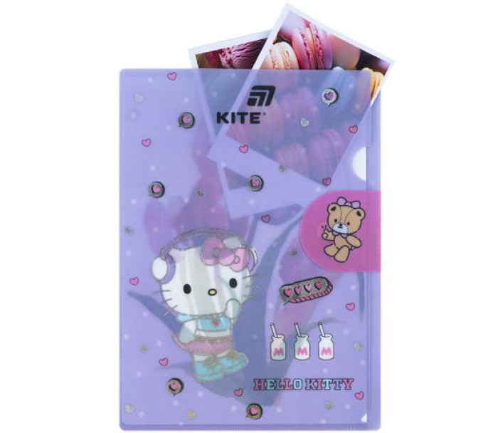 папка, куточок, клапаном, виконана, міцного, пластику, шиммером, оздоблена, фольгою, закривається, клапан, надійно, зберігає, документи, від, забруднень, заминань, щільність, 300, мкм, Kite, HK25-248-5