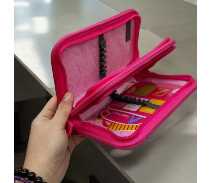 Яскравий, гарний пенал із блискучими паєтками. Має міцну картонну основу та закривається на блискавку. Є 2 місткі відділення з безліччю кріплень для канцелярії. Міцні матеріали та надійна фурнітура, твердий каркас з яскравим малюнком. Розмір пеналу – 19х4,5х12 см.