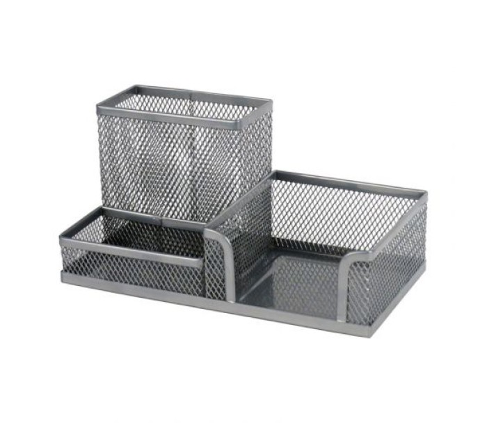Порядок на столі - порядок у справах. Підставка-органайзер Axent - ще один офісний аксесуар, щоб підтримувати порядок на робочому столі - дозволяє естетично і зручно розмістити паперові блоки і канцелярське приладдя. Складається з 3-х відділень. Підставка-органайзер з металевої сітки органічно і "невагомо" виглядає на будь-якому робочому столі. Міцний матеріал, якісне фарбування і обробка країв, суцільнометалеве дно забезпечують акуратний зовнішній вигляд протягом довгого часу. Підставка-органайзер з металевої сітки може стати доповненням до інших настільних аксесуарів Axent з цієї серії.
