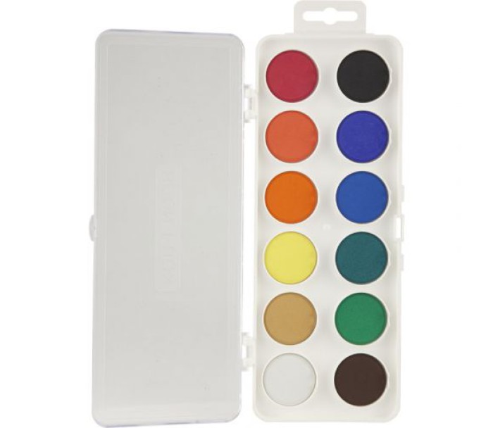 Сухі акварельні фарби у пластиковій упаковці. Яскраво малюють, швидко сохнуть, не розтікаються. Підходять для школярів, студентів і художників-початківців.