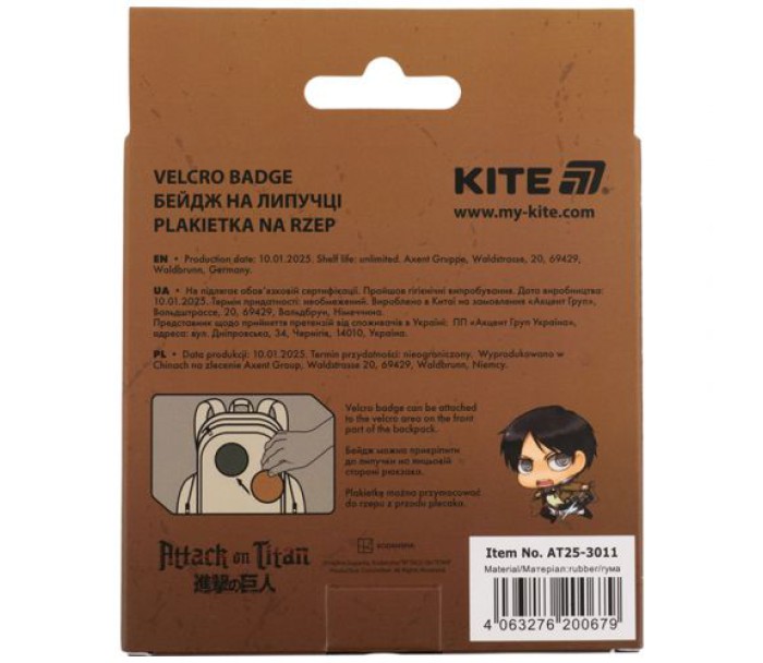 бейдж, гуми, липучці, запакований, картонну, коробку, Kite, AT25-3011