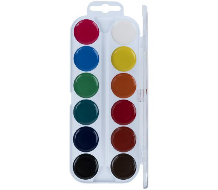Напівсухі медові акварельні фарби Kitе. Фарби містять 12 кольорів в зручній пластиковій упаковці з прозорою кришкою. Кольори яскраві і насичені. Фарби прекрасно змішуються і розмиваються, легко беруться на пензель. Акварелі приємної однорідної текстури, фарби чистого однорідного кольору і рівномірно наносяться на поверхню.