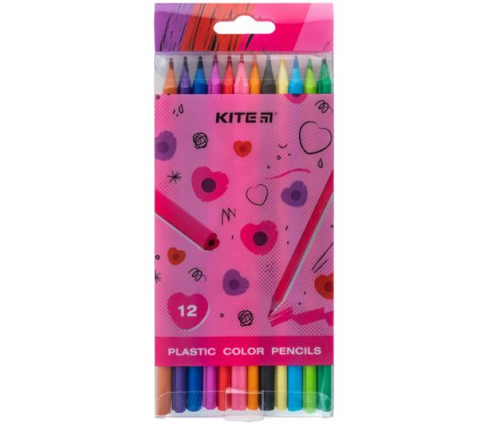 Олівці кольорові пластикові, 12шт Kite Heart