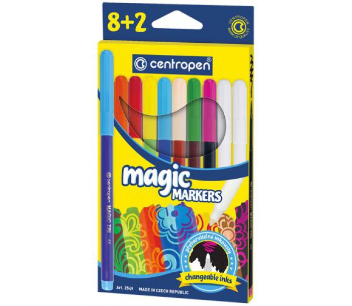 Фломастери з «магічним» чорнилом, що міняє свій колір після промальовування поглиначем чорнила.
