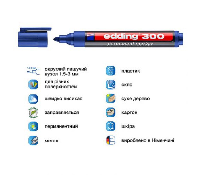 Спеціальний склад чорнила edding на спиртовій основі при зберіганні не роз'їдає поверхню, на яку нанесений.