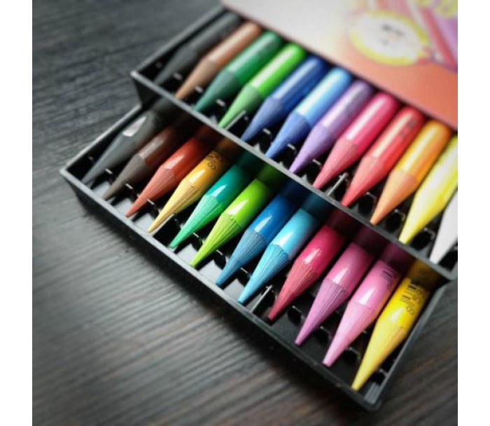 Художні кольорові бездеревні олівці в наборах. Олівець може залишати як тонку лінію, так і широкий слід (якщо малювати всією площиною грифеля). Покриття - кольоровий лак. Картонна упаковка з пластиковим піддоном.