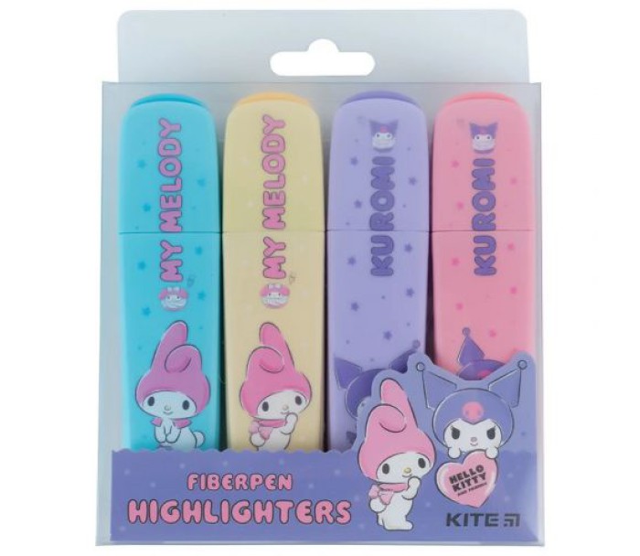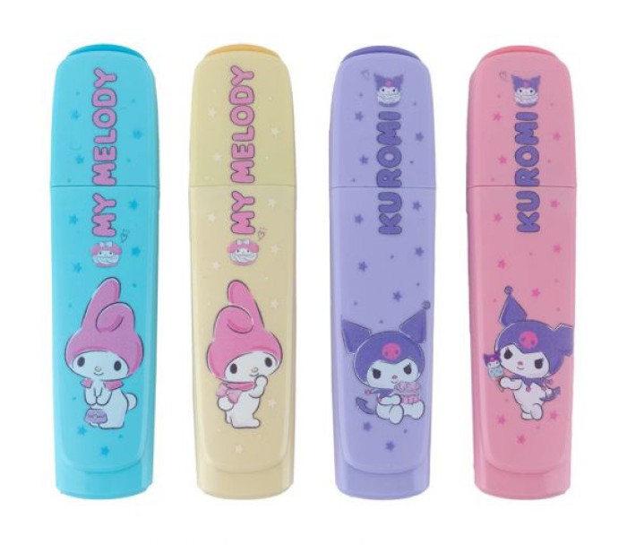 Набір з 4-х маркерів-текстовидільників, прикрашених зображеннями героїнь бренду Sanrio - Куромі та Май Мелоді. Обовʼязково знадобляться у школі, на роботі та вдома. Пігментне чорнило стійке до ультрафіолету, довго не вицвітає. Кольори не перебиваються на зворотний бік листка. Розмір маркера: 11 х 2.5 х 1 см.