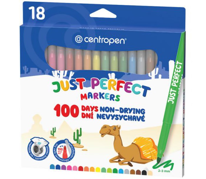 Фломастери з великим запасом спеціального чорнила, завдяки чому фломастер не висихає без ковпачка протягом 60 днів.