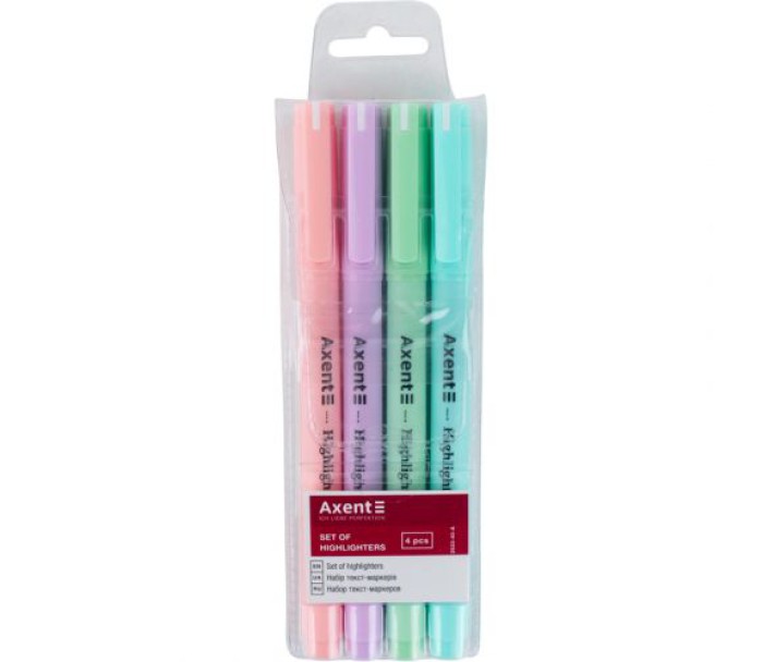 Текст-маркери Axent чудово підходять для виділення як друкованого, так і написаного від руки тексту, на всіх видах паперу - щоденник, документ, каталог, етикетка тощо. Зручні у використанні для виділення рядків повністю або підкреслення - ширина лінії 2-4мм. Чорнило на водній основі, не токсичне. Слід маркерів не передається по факсу та при копіюванні. Набір з 4-х кольорів.
