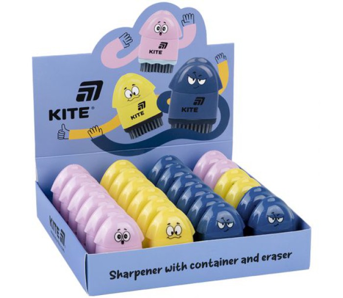 Точилка з контейнером та гумкою Kite K25-365 Faces – багатофункціональний аксесуар для навчання і творчості.