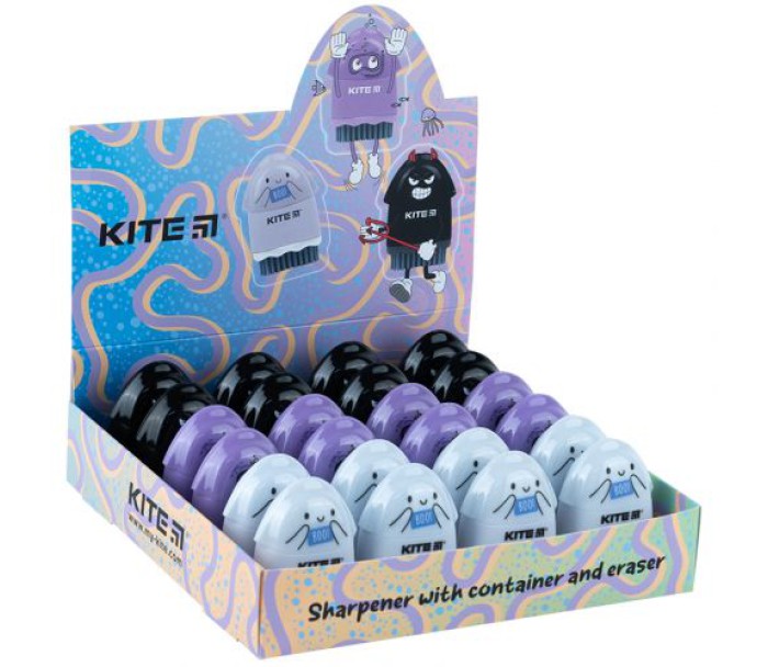 точилка, контейнером, гумкою, асорті, кольорів, упаковка, дисплей, Kite, K24-365
