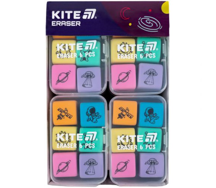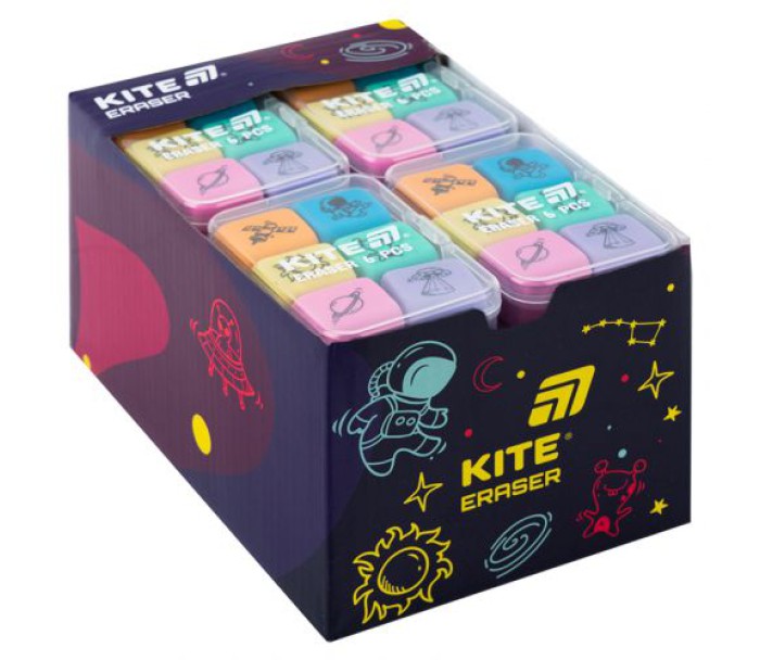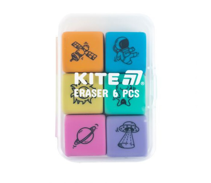 "Набір гумок в пластиковому боксі Kite K24-145 Space – 6 різнокольорових гумок та зручний компактний бокс для їхнього зберігання.