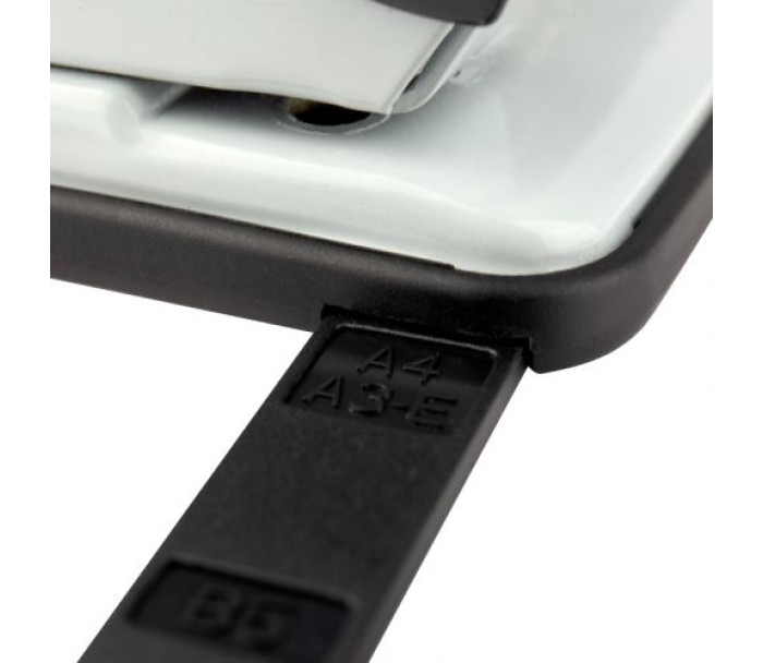 Діркопробивач Exakt-2 належить до металевої серії. Міцний металевий корпус і надійний металевий механізм забезпечують комфортну роботу діркопробивача і його довговічність, навіть при інтенсивному навантаженні. Леза довго залишаються гострими. Для зручності діркопробивач оснащений висувною обмежувальною лінійкою з точною шкалою форматів паперу (А3, А4, А5). Висувна лінійка необхідна для позиціонування аркушів паперу, які вставляються в діркопробивач, і дозволяє завжди отримувати точний результат і однакові стоси підшитих документів зі співпадаючими отворами. Знімний резервуар для конфетті відкривається м'яко. Прогумована підошва запобігає ковзанню діркопробивача по поверхні. Діаметр отвору 6 мм, відстань між пробитими отворами 80 мм.