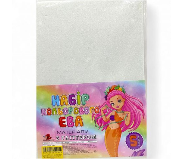 Фоаміран з гліттером (21х29,7см, товщина - 2 мм), 5 аркушів, білий