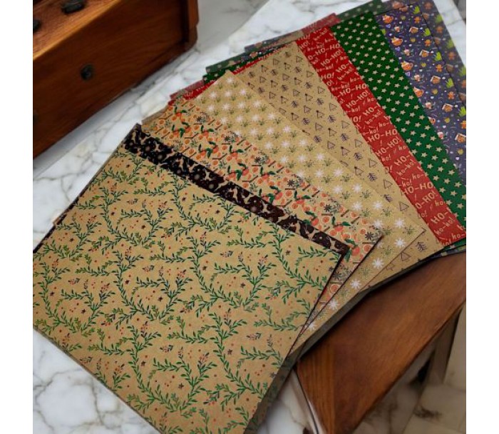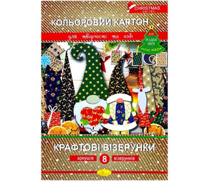 Набір кольорового картону "Крафтові візерунки" РІЗДВЯНА СЕРІЯ