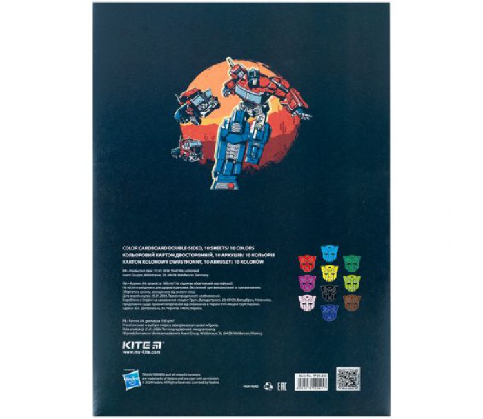 Набір складається з 10 аркушів. Палітра має гармонійні кольори: червоний, фіолетовий, рожевий, жовтий, синій, блакитний, зелений, салатовий, коричневий та чорний.