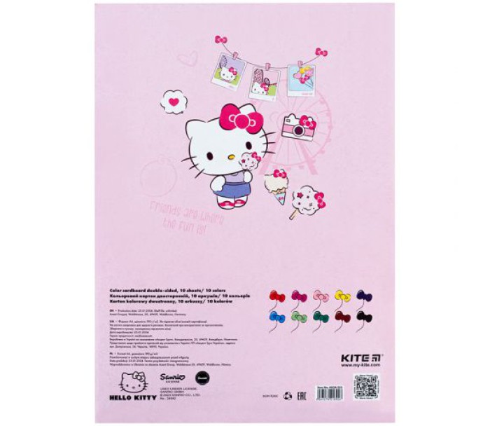 Набір складається з 10 аркушів. Палітра має гармонійні кольори: червоний, фіолетовий, рожевий, жовтий, синій, блакитний, зелений, салатовий, коричневий та чорний.