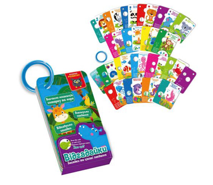 Гра серії "Угадайка" - це набір карток із яскравими картинками, загадками та завданнями на логіку. Картки скріплені кільцем, яке можна зняти або прикріпити картки до коляски або ліжечка за його допомогою. Граючи з картками, дитина зможе тренувати логічне мислення, дрібну моторику рук, памʼять та уяву.