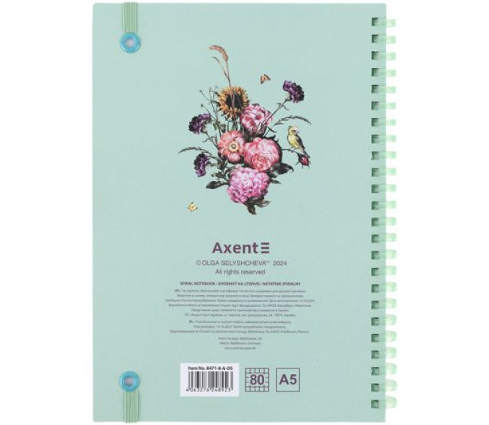 Блокнот Axent на м'якій спіралі збоку підходить для щоденних нотаток, фіксації важливої інформації, замальовок схем, графіків, ведення обліку і т.д.
