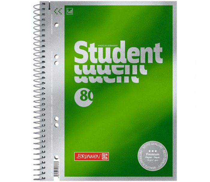 коледж, блок, brunnen, premium, формату, спіралі, виготовлений, європейського, високоякісного, білого, паперу, аркушів, нелінованих, папір, стійкий, чорнила, сторінки, мікроперфорацією, для, легкого, відривання, додаткова, перфорація, отворів, кріплення, папках, колір, вишуканий, зелений, металевим, ефектом, BRUNNEN, канцелярія, 10-671, 50