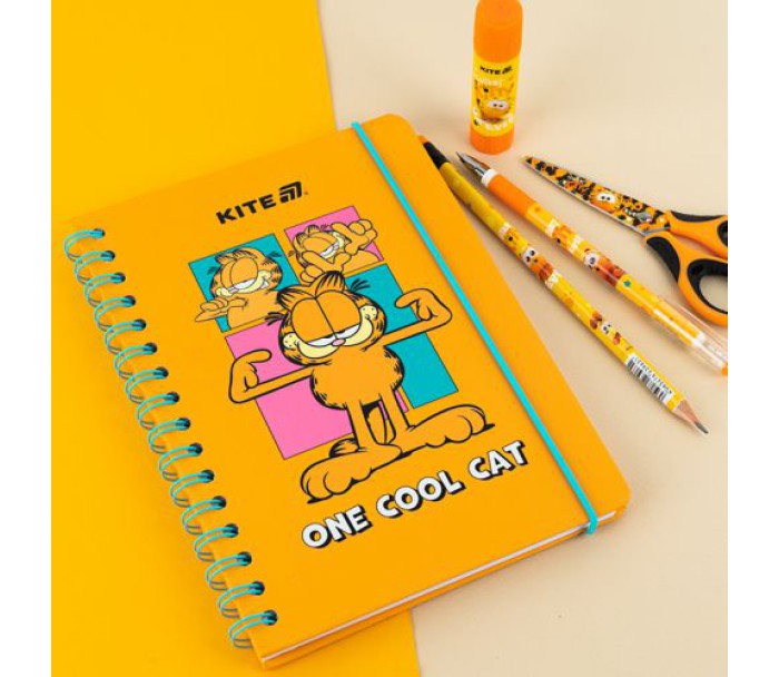 тверда, обкладинка, спіралі, зручний, формат, сторінки, клітинку, малюнком, особливості, блокнота, а5, кількість, аркушів, 80, папір, 80г, м2, картонна, обкладинк, фіксуюча, резинка, Kite, GF25-190