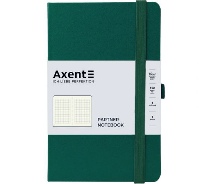Книга записна Axent із серії Partner призначена для тих, хто цінує класичний діловий дизайн і максимальну функціональність. Може використовуватися для записів, для планування, як недатований щоденник, для будь-яких ділових і творчих завдань. Записна книжка Partner має тверде переплетення з вінілу, завдяки чому навіть з часом зберігає акуратний і презентабельний вигляд. Якісний папір щільністю 80г/м2 благородного кремового відтінку забезпечує комфортне письмо, добре вбирає чорнило. Папір у клітинку, зручно робити будь-які записи, малювати, креслити. Розміри клітинки складають 5х5 мм. Містить 96 аркушів, формат А5- дозволяє фіксувати багато інформації, і при цьому зручно носити записну книжку з собою. Закладка дозволяє швидко знайти і відкрити потрібні сторінки. Кишеня на форзаці буде надійно зберігати нотатки, чеки, картки та інші важливі дрібниці. Петля для ручки не дає ручці загубитися і випасти, немає необхідності носити ручку між сторінок і псувати зовнішній вигляд записної книжки.
