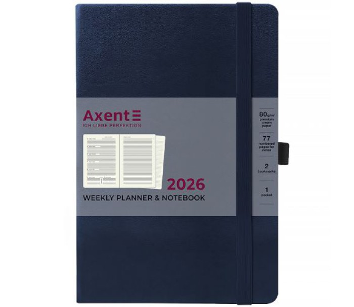 Зручний щотижневик Axent із серії Strong в твердій обкладинці. Використовується для щоденних записів, а також ділових та творчих задач.