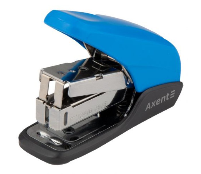 Енергозберігаючий степлер Axent серії Shell. Спеціальна конструкція знижує і полегшує навантаження при натисканні, забезпечує дуже легке скріплення - вимагає на 60% легше натискання, ніж звичайний степлер. Призначений для ручного або настільного скріплення аркушів паперу. Зроблений з якісного пластику - легкого і міцного, стійкого до навантажень. Зручний у використанні - надійний механізм подачі скоб з міцного металу забезпечує легку подачу скоб в робочу зону, скріплення без осічок і просту заміну скоб. Має віконце для контролю наявності скоб і вбудований дестеплер, що дозволяє заощадити час, коли потрібно видалити скобу. Модель має яскраві соковиті кольори, яких так іноді не вистачає в офісних буднях.