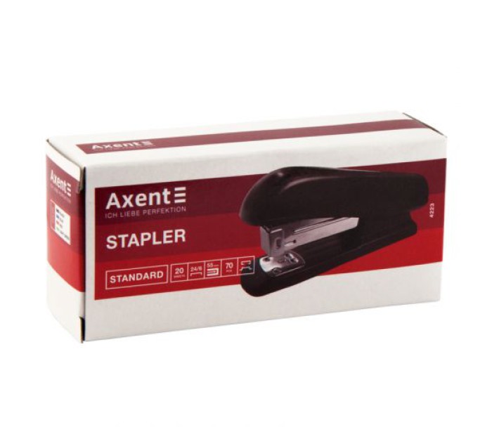Степлер серії Standard виконаний в яскравих кольорах і ергономічному дизайні, який підвищує зручність в роботі. Призначений для ручного або настільного скріплення аркушів паперу. Зроблений з якісного пластику, робочий механізм з металу. Має віконце для контролю наявності скоб і вбудований дестеплер, що дозволяє заощадити час, коли потрібно видалити скобу.