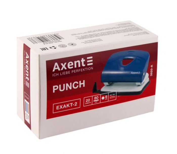 діркопробивач, exakt, металевої, міцний, металевий, корпус, надійний, механізм, комфортну, роботу, діркопробивача, довговічність, при, інтенсивному, навантаженні, леза, залишаються, гострими, для, зручності, оснащений, висувною, обмежувальною, лінійкою, шкалою, форматів, паперу, висувна, AXENT, 3920-01-A