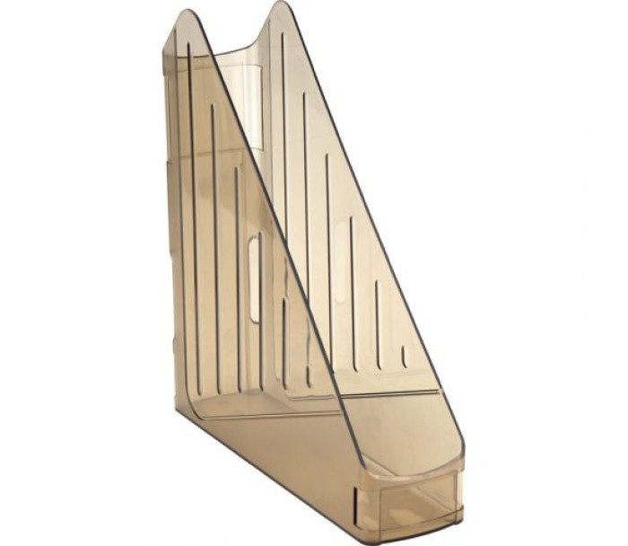 Вертикальний лоток для документів виконаний з високоякісного первинного пластику. Стійкий і місткий. Лоток має оптимальний розмір бортика для зручного доступу до документів і надійного їх зберігання. Колір - прозорий коричневий.